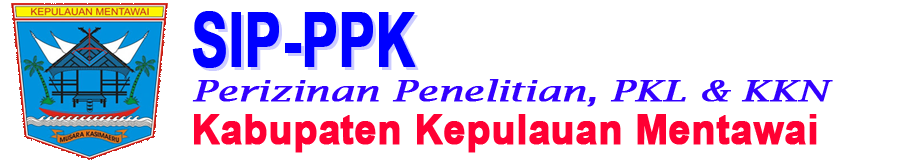 SIP-PPK adalah Sistem Informasi Pelayanan Perizinan Penelitian , PKL dan KKN yang ada di Kabupaten Kepulauan Mentawai. Aplikasi SIP-PPK dibuat untuk mempermudah dan mempercepat pelayanan pemberian surat izin Penelitian , PKL dan KKN yang diajukan oleh Masyarakat , Mahasiswa , Pelajar maupun Peneliti.